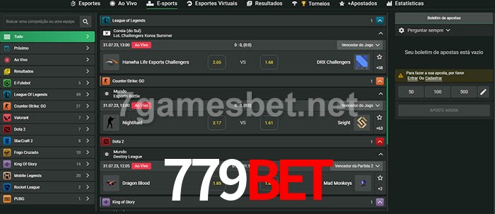 O 779bet oferece uma grande seleção de opções de apostas em e-sports com probabilidades competitivas